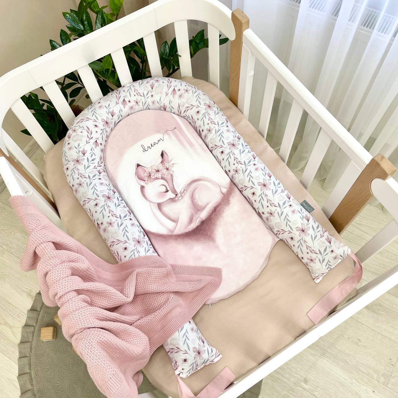 - Conception : Le nid-cocoon est équipé d'un matelas plat ergonomique avec des bords souples de 10 cm de hauteur tout autour, permettant de créer un environnement de sommeil sécurisé. La taille du nid peut être ajustée en resserrant un cordon spécial et en le fixant avec un nœud.