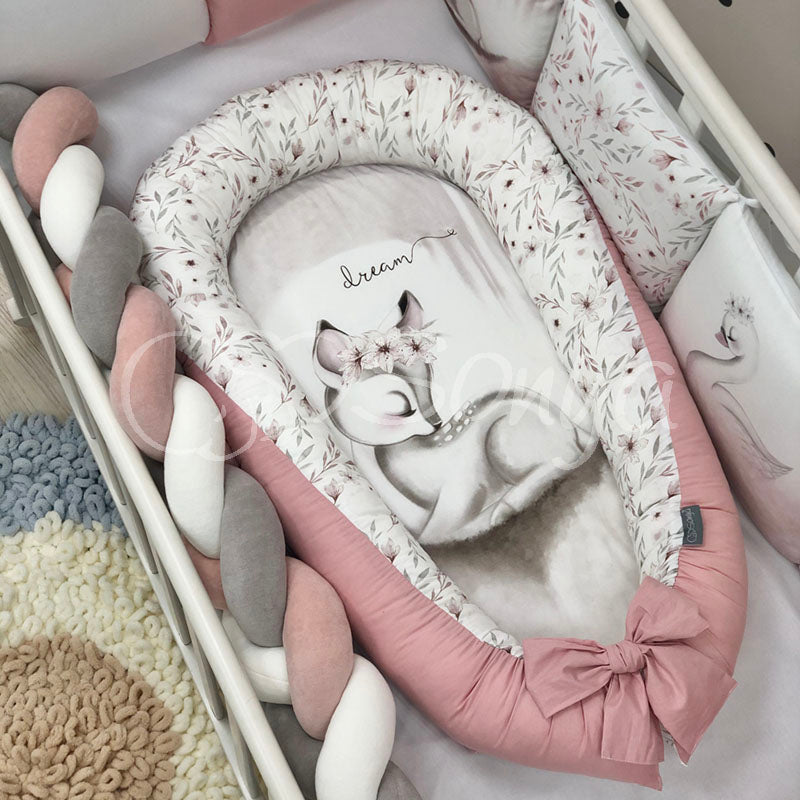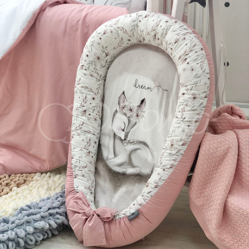 Un nid-cocoon, un petit berceau ou un positionneur pour nouveau-né. Il offre un espace de sommeil sécurisé et confortable pour les bébés jusqu'à environ 5-6 mois.