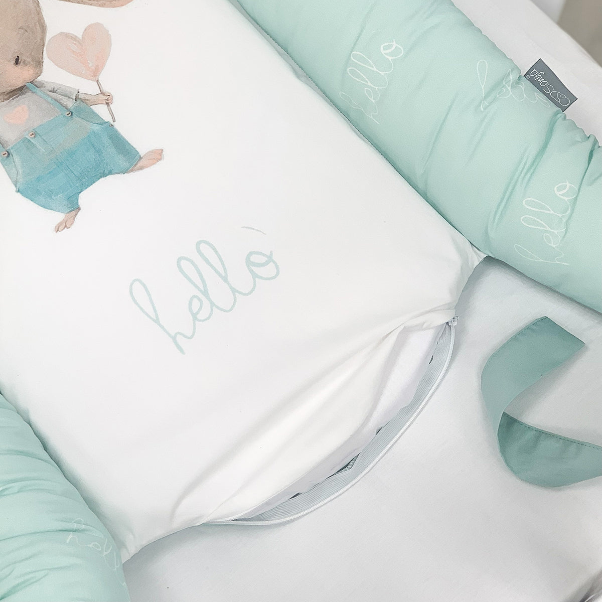 - Entretien : Le lavage du cocoon doit se faire à la main ou en cycle délicat à une température de 30-40 °C. L'utilisation d'un adoucissant est recommandée pour maintenir la douceur du tissu. Il est important d'éviter les détergents contenant des agents de blanchiment ou du chlore, ainsi que le nettoyage à sec. Le cocoon est équipé d'une partie inférieure zippée pour faciliter le lavage et le séchage sans le matelas.
