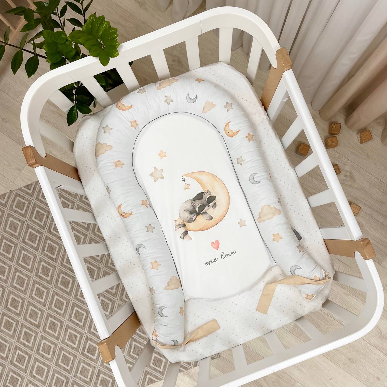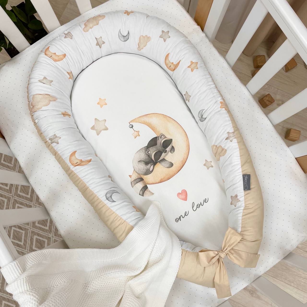 Un nid-cocoon, un petit berceau ou un positionneur pour nouveau-né. Il offre un espace de sommeil sécurisé et confortable pour les bébés jusqu'à environ 5-6 mois.