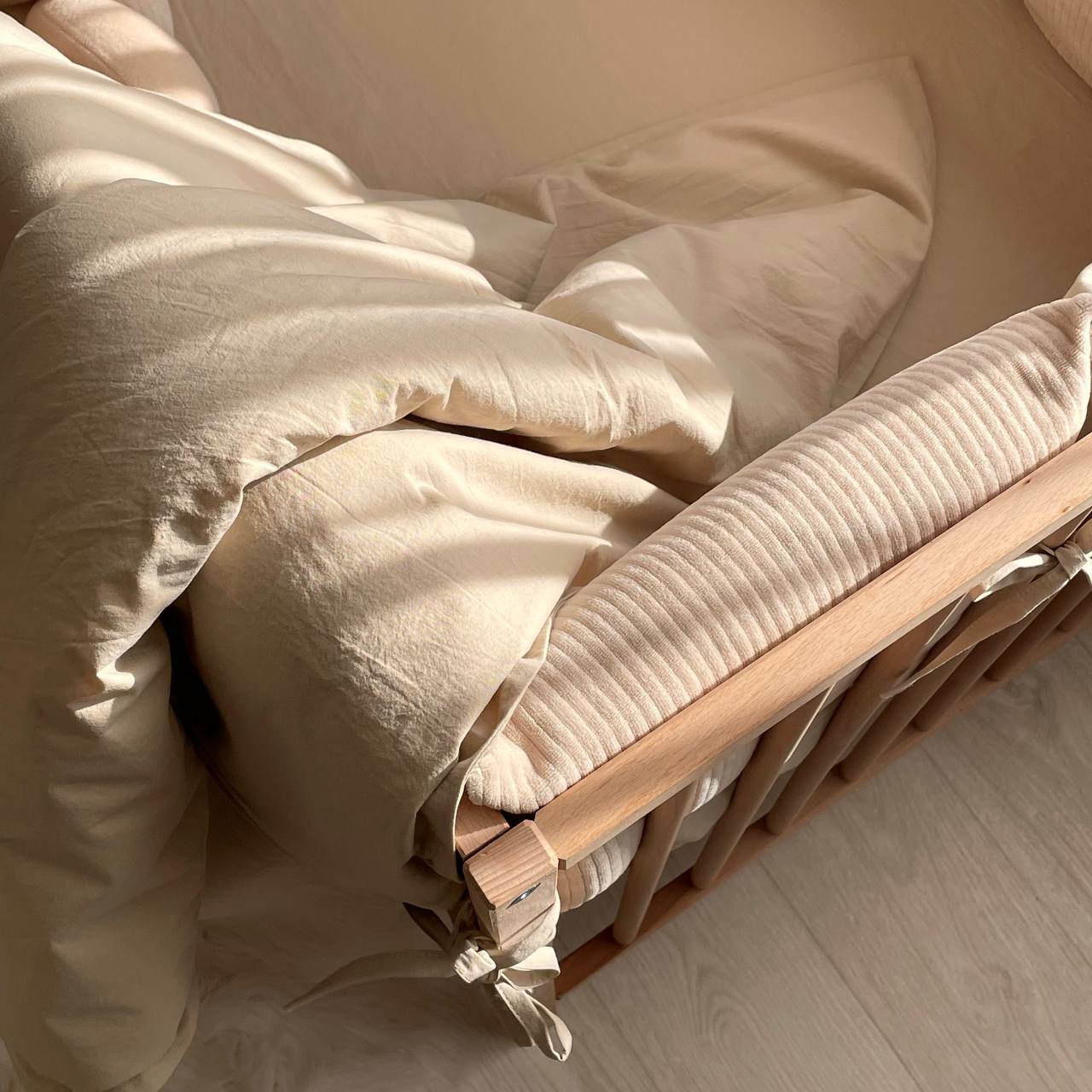 Ecotton - un rembourrage écologiquement propre et hypoallergénique, fabriqué à partir de fibres de coton naturelles. Ecotton est allégé et amélioré spécialement pour la fabrication de couvertures et oreillers pour berceau, en respectant les normes et exigences de la literie pour les nouveau-nés. Le rembourrage des bordures est en fibre siliconée.
