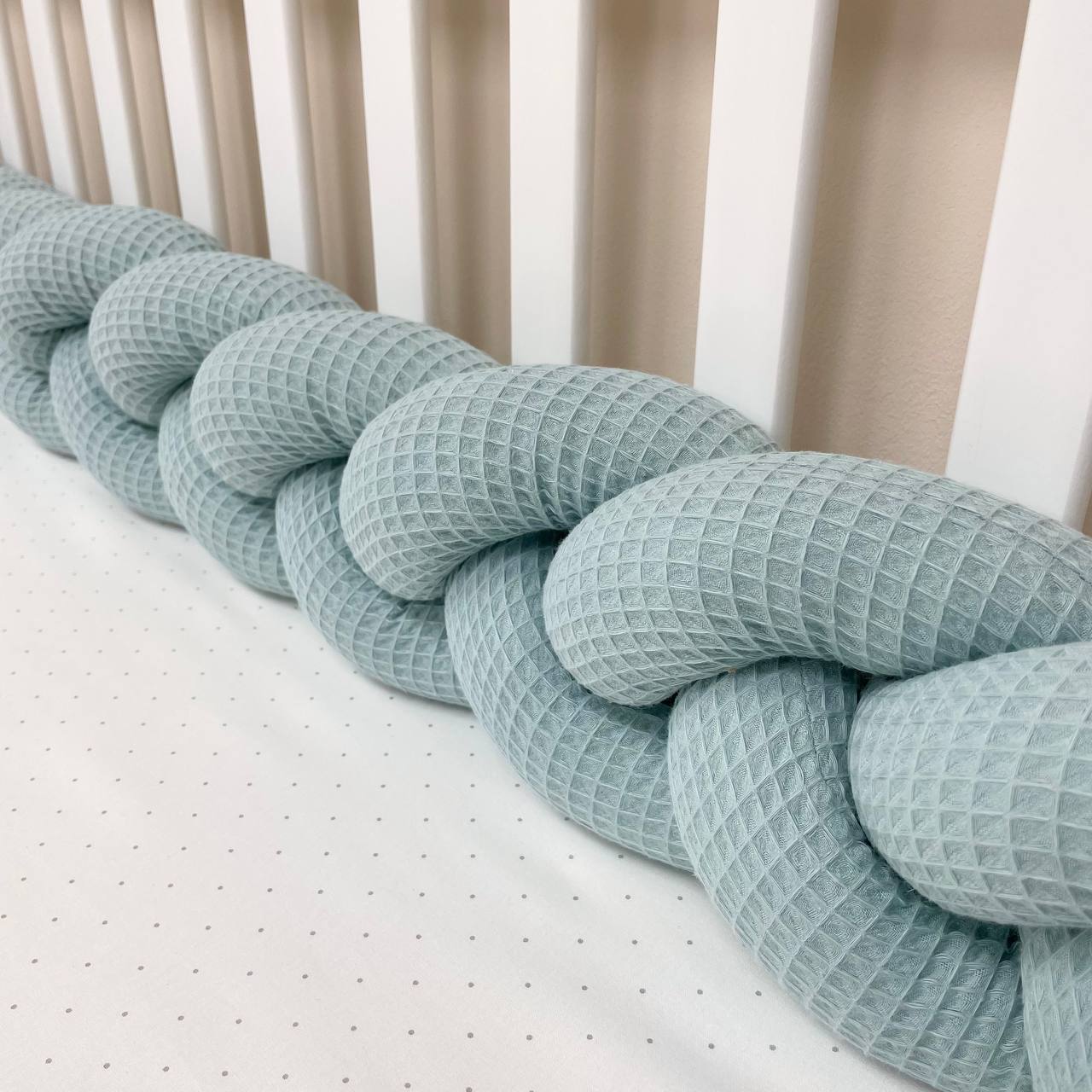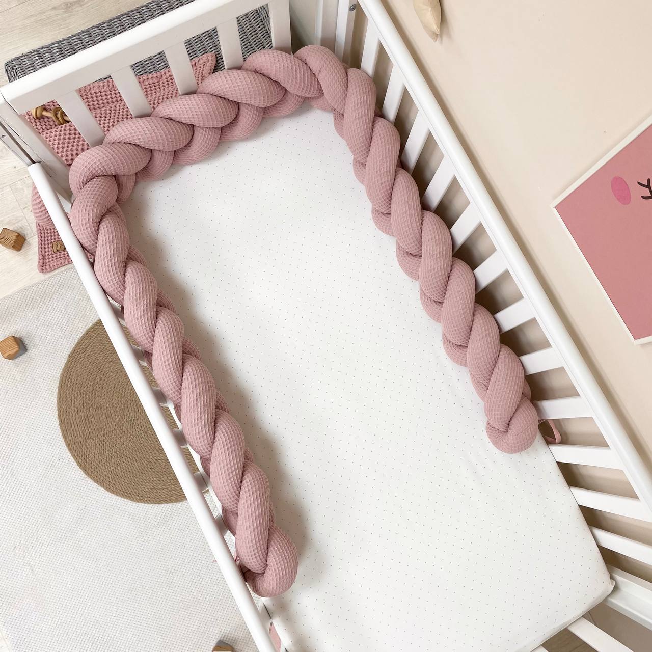 Utilisation : - Ce bord protecteur est élégant, doux et agréable au toucher, offrant une protection sans limiter l'accès à l'air dans le berceau. Il est pratique et n'occupe pas beaucoup d'espace, convenant à des lits rectangulaires, ovales et ronds.